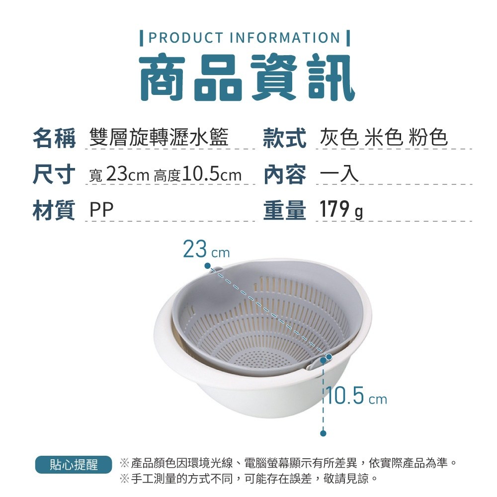 這款雙層旋轉瀝水籃是您廚房的得力助手。沉穩灰色調簡約時尚,為您的廚房增添一份質感。雙層設計方便清洗蔬果和瀝水,旋轉功能讓您輕鬆倒出多餘水分,保持食材新鮮,使用更安心。配有把手,方便拿取和移動,讓您的廚房工作更加輕鬆高效。一套包含兩個瀝水籃,滿足您不同的廚房需求,是現代家庭的理想選擇。