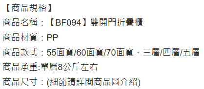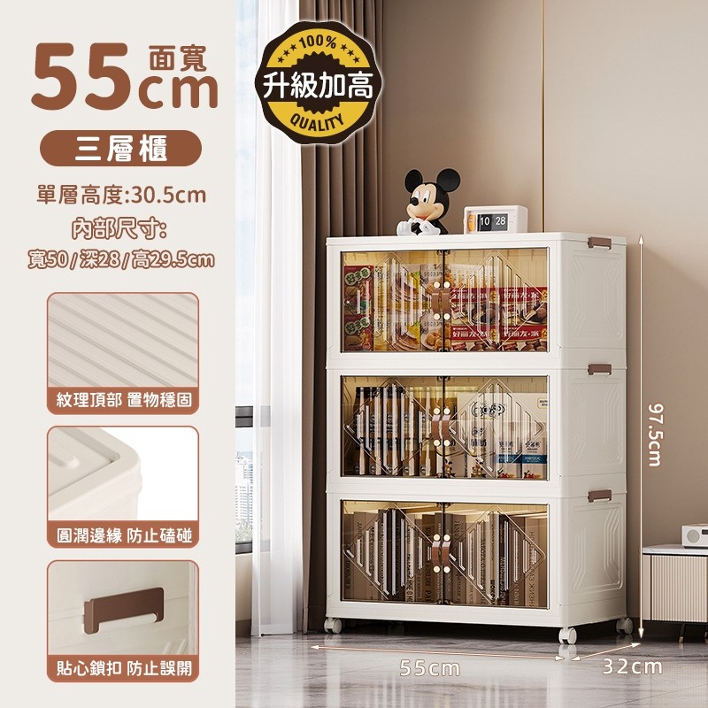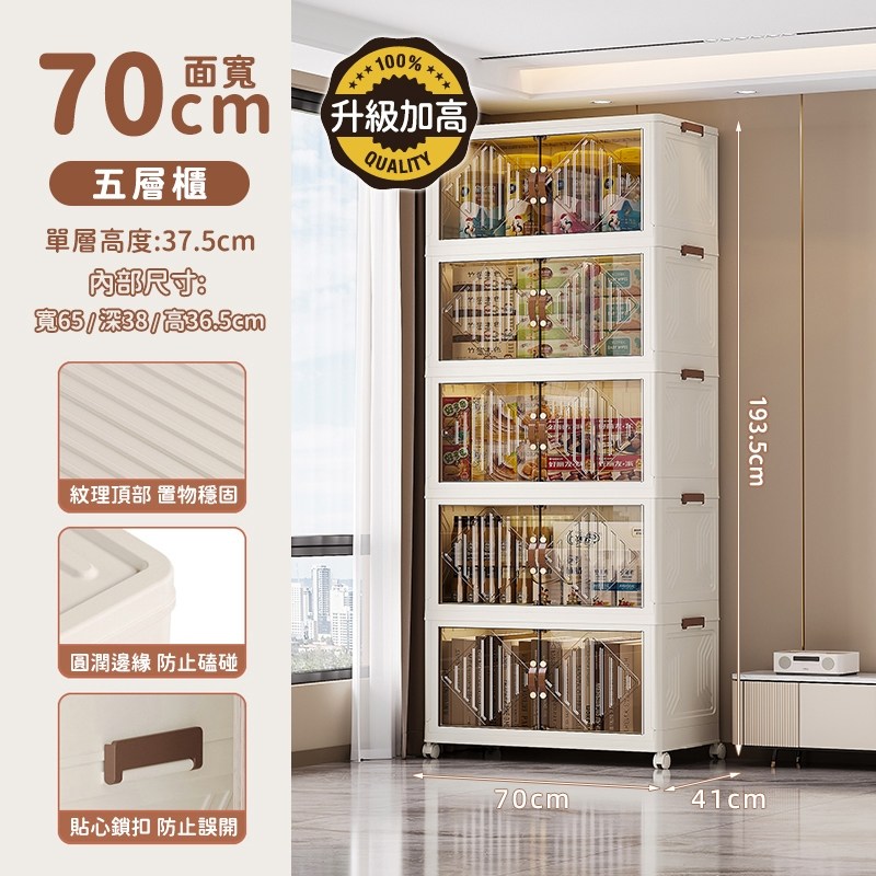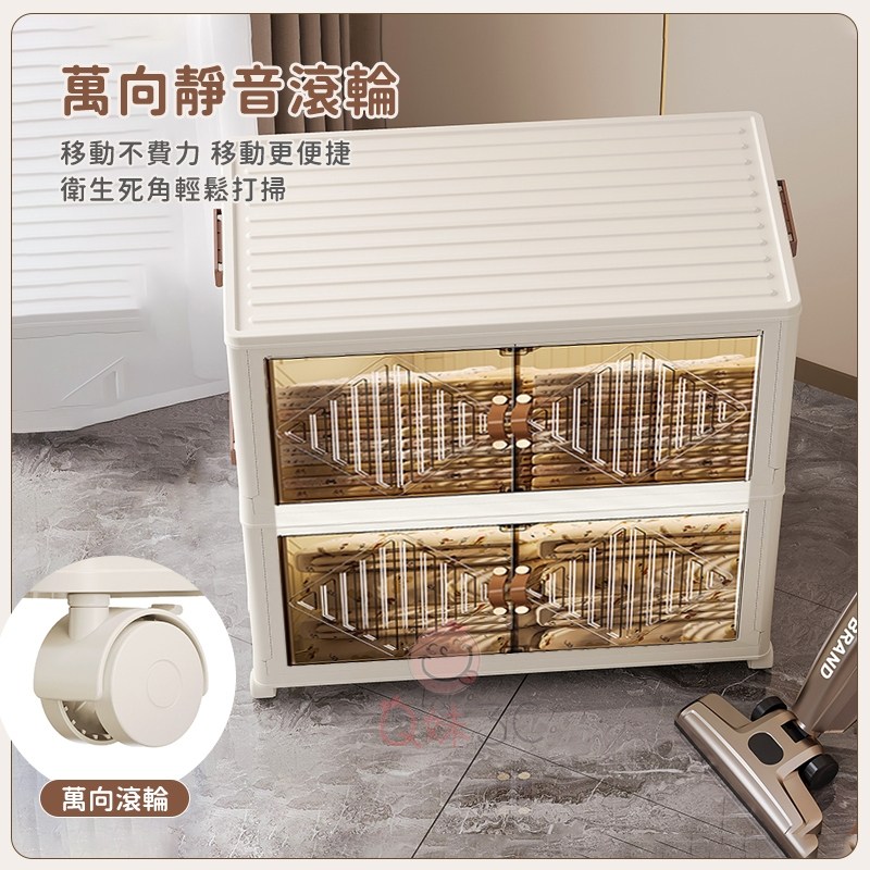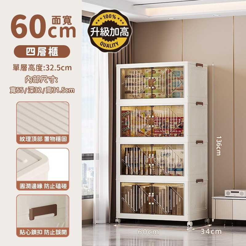 這款雙開門折疊櫃是您整理居家空間的理想選擇。60 x 34 x 136公分的四層架子式收納櫃,提供充足的儲物空間,適用於臥室、衣櫥、客廳等多種房型。採用可摺疊設計,方便收納不佔空間,附有輪子,移動輕鬆不費力。透明窗口設計,讓您一目瞭然櫃內物品,磁吸式開關,取物方便快捷。塑膠材質堅固耐用,含蓋子、輪子、扣件等組件,讓您的收納更加完善。