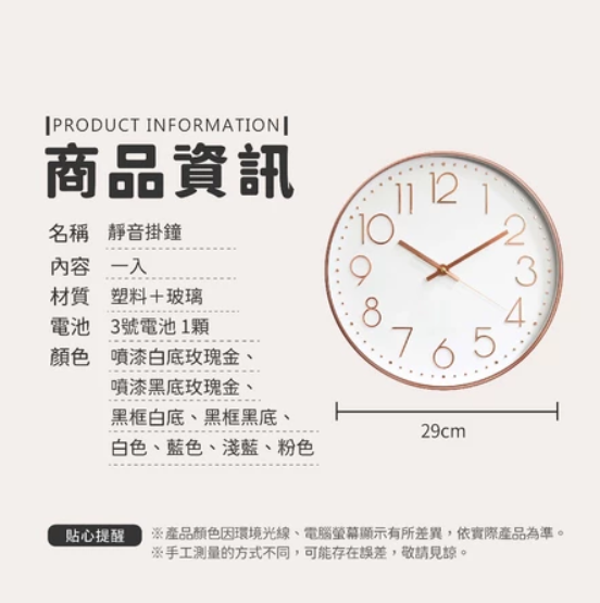 這款靜音掛鐘以其簡約現代的設計,為您的居家空間增添一份精緻品味。金框與黑底的經典配色,不僅時尚百搭,更能輕易融入各種室內風格。29公分的適中尺寸,無論是客廳、臥室或辦公室都非常適合。採用靜音機芯,確保您在享受時間的同時,不受滴答聲干擾,營造寧靜舒適的環境。塑料與玻璃的材質組合,兼顧了輕巧與耐用性,讓您長時間使用也不易變形。使用3號電池供電,安裝簡便,是您提升生活品質的理想選擇。