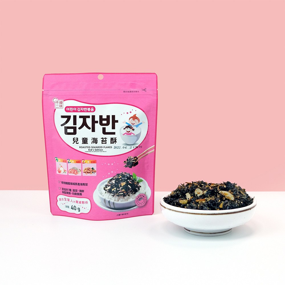 韓味不二兒童海苔酥,嚴選韓國純淨海域的海苔,搭配多種蔬菜、海鮮與堅果,為孩子提供均衡營養。每包40克的香酥海苔片,口感酥脆,味道鮮美,是孩子們餐桌上的美味佳餚。本產品不含人工色素及防腐劑,讓孩子吃得安心,家長買得放心。無論是搭配米飯、粥品或麵條,都能為孩子帶來豐富的味覺體驗,讓孩子愛上吃飯。