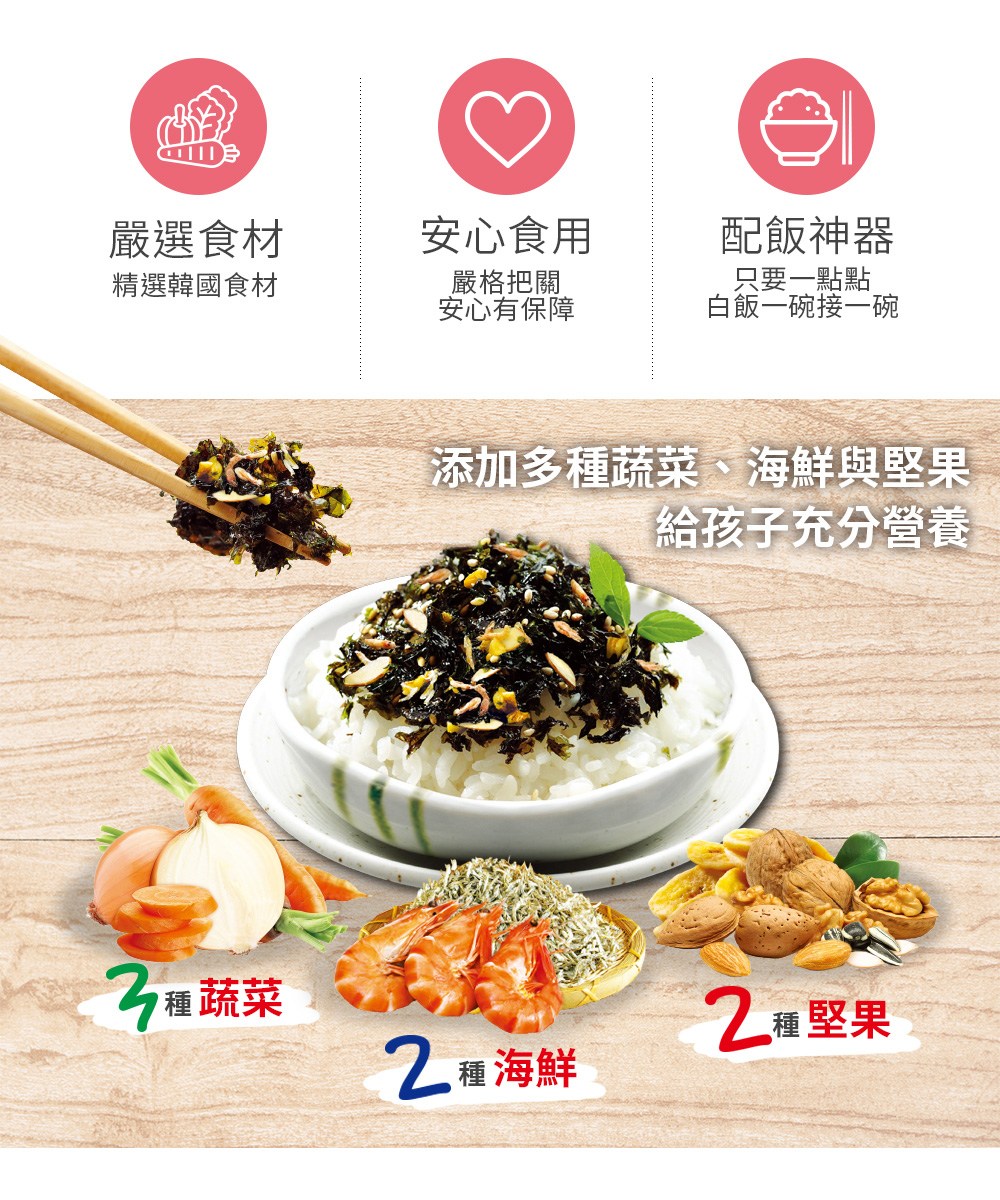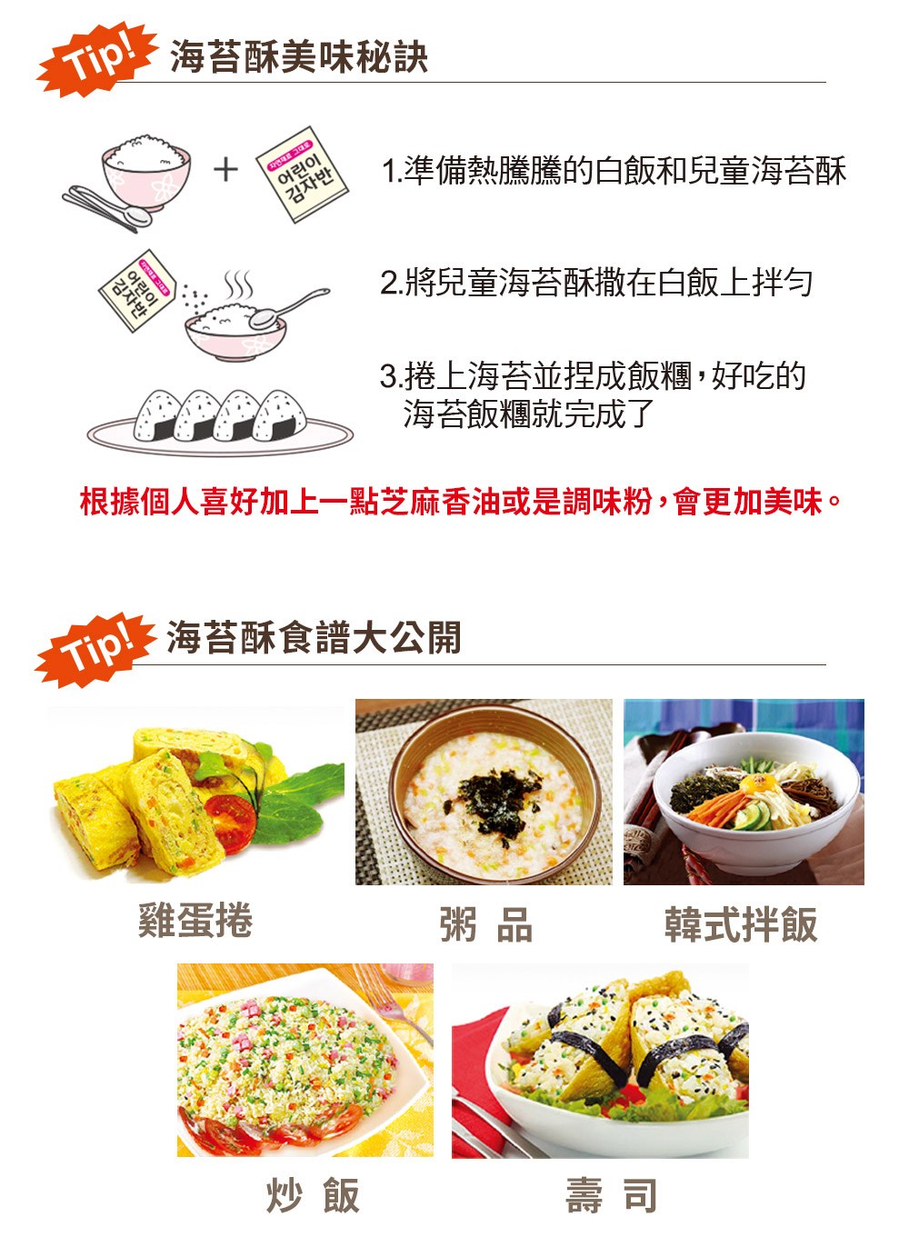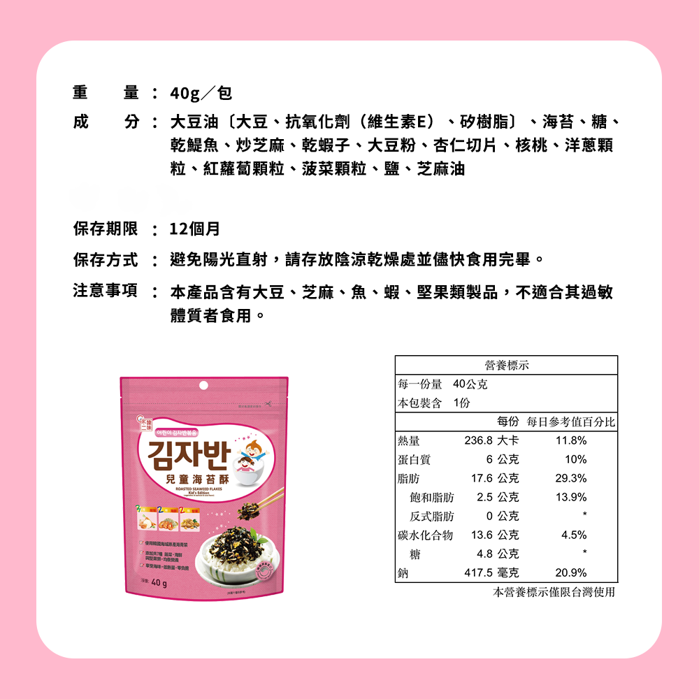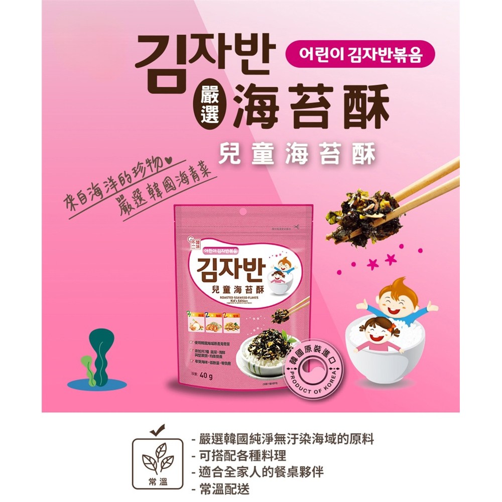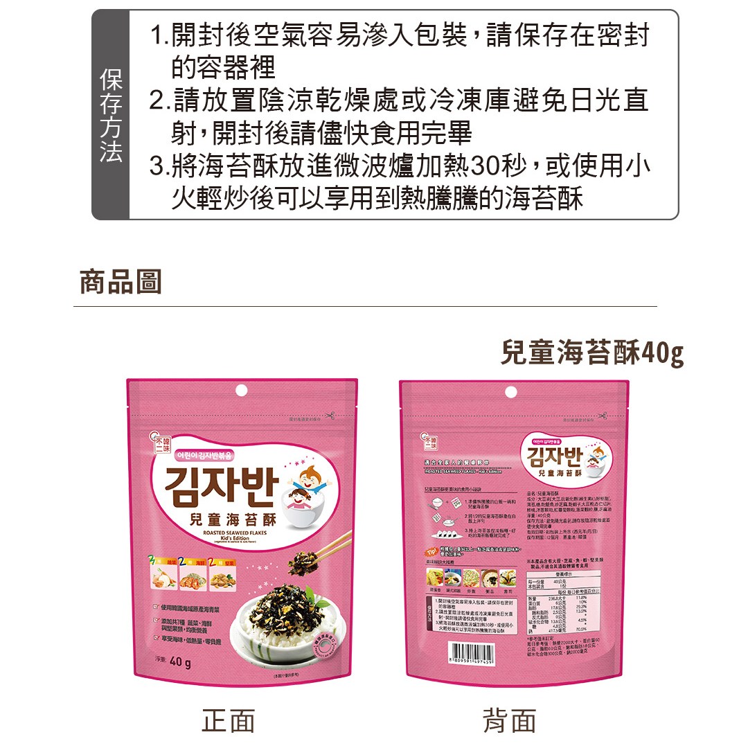 - 酥脆海苔口感,讓孩子愛不釋手,一口接一口停不下來,享受美味時光。