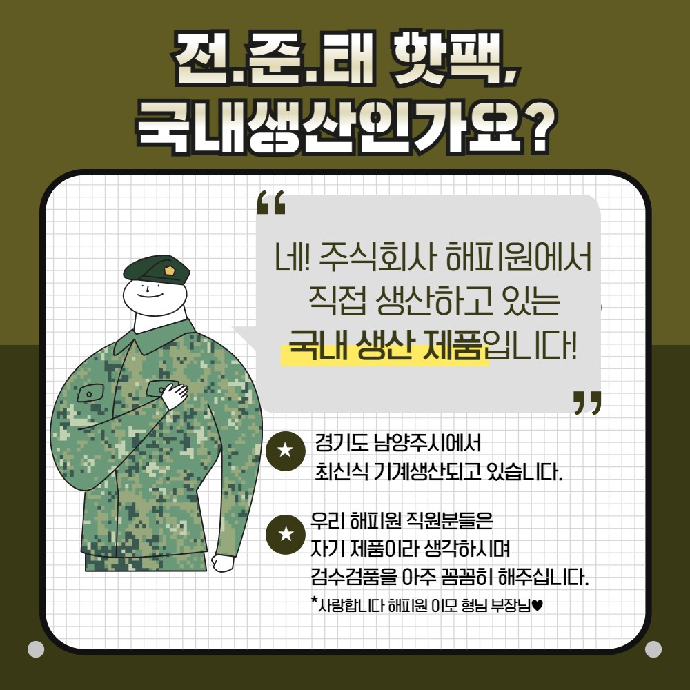 這款韓國製造的全俊泰大容量暖暖包,是您寒冷天氣的最佳夥伴。150g的大容量設計,提供長達18小時的持久溫暖,讓您在戶外活動或日常生活中都能感受到溫暖舒適。口袋型設計方便攜帶,隨時隨地享受溫暖。無論是上班、上學、旅行或戶外運動,全俊泰暖暖包都能為您帶來溫暖呵護,讓您不再畏懼寒冷。現在就準備好全俊泰暖暖包,溫暖度過整個冬天!