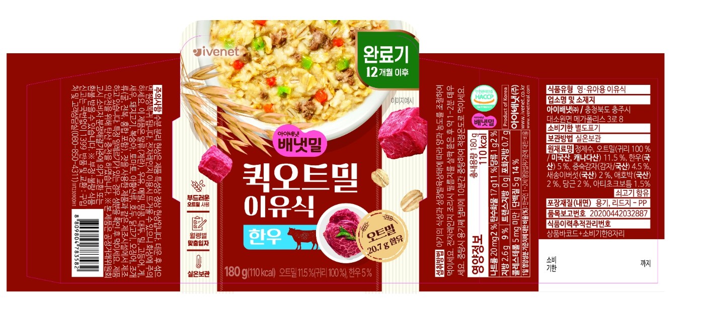 ivenet 孩童即食副食品燕麥,專為12個月以上寶寶設計,嚴選韓國優質韓牛,搭配柔軟易消化的燕麥片,富含膳食纖維與蛋白質,提供寶寶成長所需的營養。本產品不含米,以燕麥為主,口感滑順,寶寶接受度高。常溫保存,方便攜帶,不論在家或外出,隨時隨地都能讓寶寶享用美味又健康的副食品。每包含有20.7克燕麥,提供足夠的飽足感,是寶寶健康成長的理想選擇。