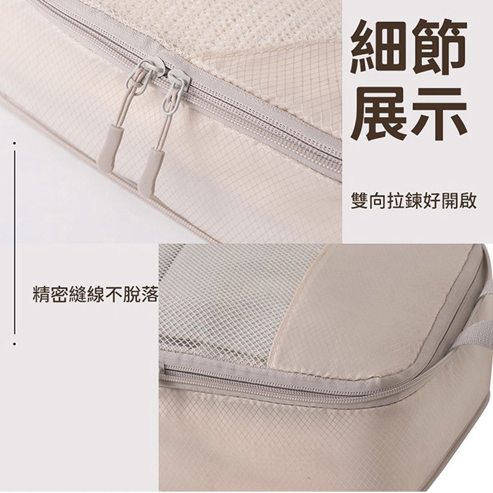 告別雜亂的行李箱,使用韓式升級質感加厚衣物收納六件組,讓您的旅行更加輕鬆有序。這款收納組包含小、中、大衣物袋,內衣袋,襪子袋和手提鞋袋,滿足您不同的收納需求。加厚材質提供更好的保護,菱形格尼龍材質防水耐用,讓您無懼潮濕環境。網布設計透氣可視,方便您快速找到所需物品,節省時間。灰色簡約時尚,讓您的行李箱整潔美觀。