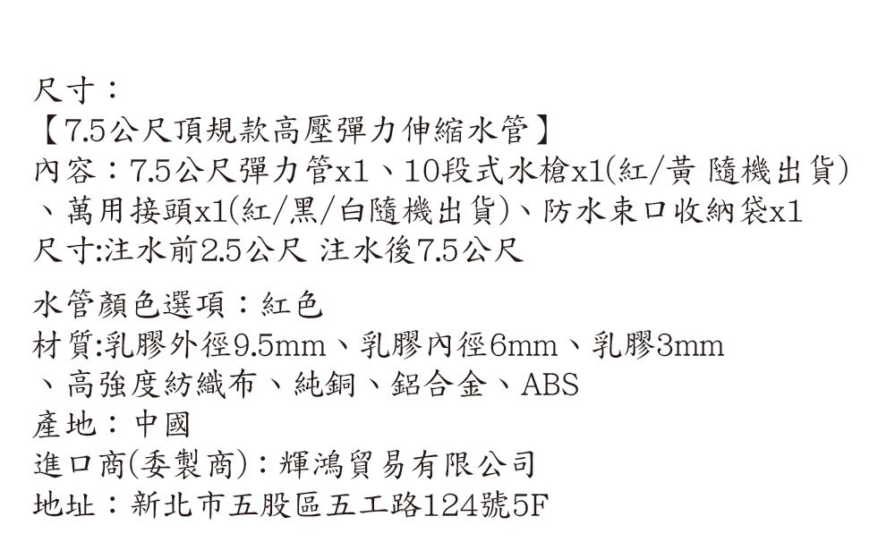 - - 高壓彈力伸縮水管讓您輕鬆澆花,7.5公尺長度,園藝清潔更方便。
