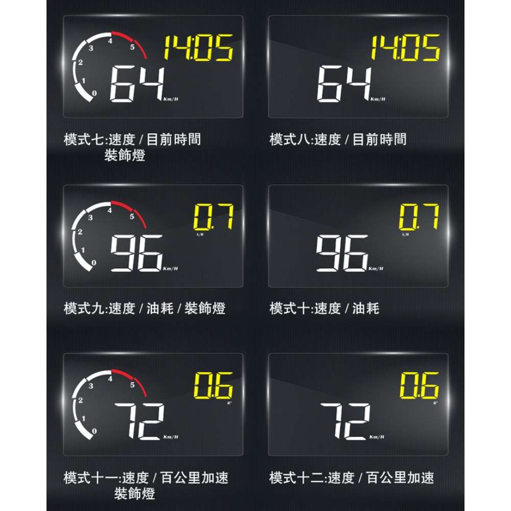 領先者 M10 彩色高清 HUD OBD2 多功能汽車抬頭顯示器 3.8吋, 1個, 黑色