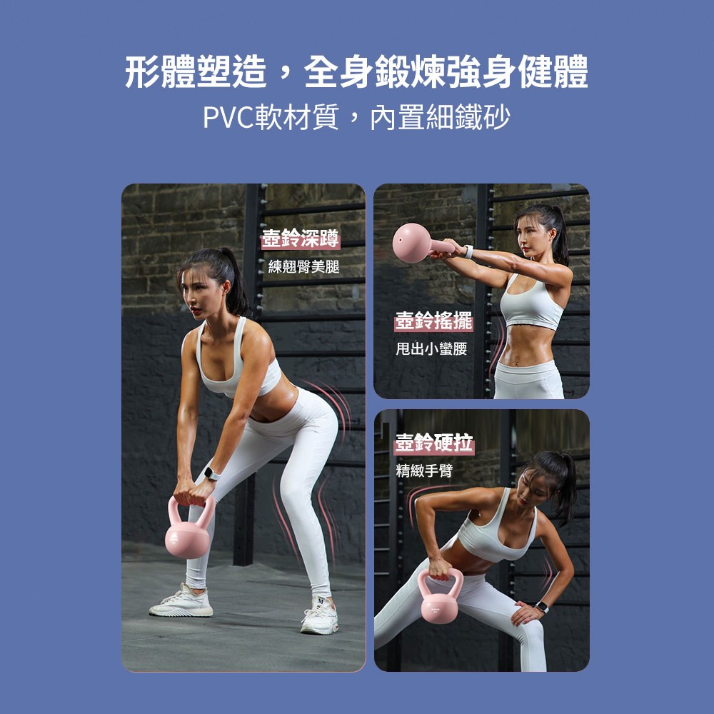- 柔軟壺鈴設計,提供舒適握感,運動時不易造成手部不適,提升訓練體驗。