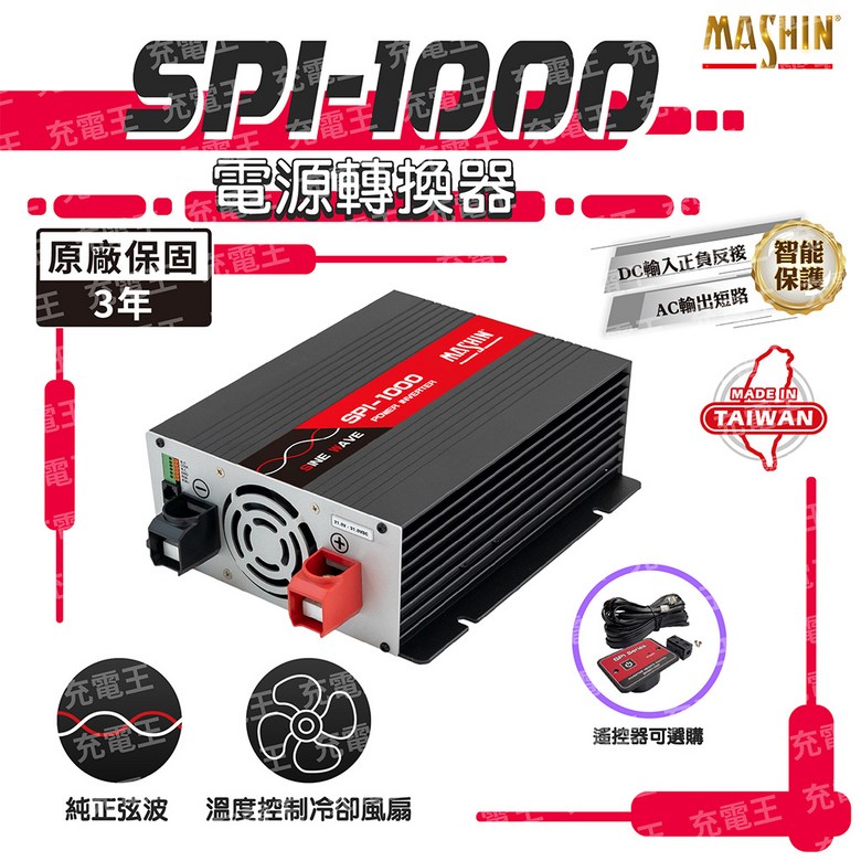 麻新電子 SPI-1000 純正弦波電源轉換器 12V 1000W 車用逆變器, 1個