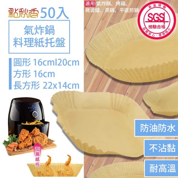 這款點秋香氣炸鍋料理紙托盤,直徑16公分,一組50個,是您廚房不可或缺的烘焙好幫手。專為氣炸鍋設計,也適用於烤箱、微波爐、蒸鍋和平底鍋,用途廣泛,保持氣炸鍋的清潔,讓您輕鬆享受美食,免去清洗的煩惱。材質安全可靠,通過SGS檢驗合格,讓您安心使用。防水防油,不易沾黏,方便又衛生,是現代廚房的理想選擇。