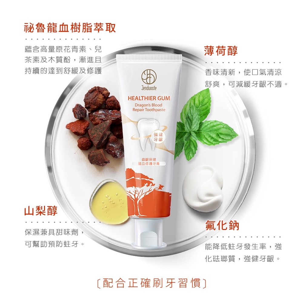珍朵絲特齒齦保健龍血修護牙膏,採用獨特龍血精華配方,能有效修護牙齦,強化牙齒周圍組織,減少牙齦問題。溫和清潔配方,不刺激牙齦,適合敏感性牙齒使用,能舒緩牙齦不適,讓刷牙過程更舒適。清新薄荷口味,能去除口中異味,讓口氣持久清新,提升社交自信。定期使用能幫助改善牙齦出血問題,強化牙齦健康,讓您擁有更健康的口腔環境。