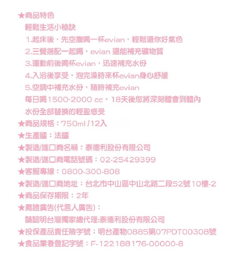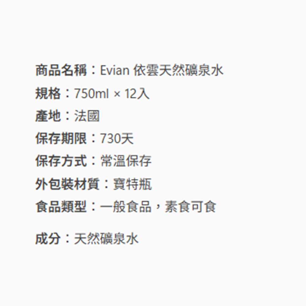 來自法國阿爾卑斯山的evian依雲天然礦泉水,以其獨特的礦物質平衡和純淨口感聞名。這箱裝包含12瓶750ml的寶特瓶,方便您隨時補充水分,維持健康活力。依雲礦泉水經過嚴格的品質檢驗,確保每一滴水都安全可靠,讓您安心飲用。無論是運動後、辦公室或居家生活,evian都是您理想的健康飲品選擇。Coupang 酷澎 Rocket Delivery 讓您快速收到商品,享受便利的購物體驗。