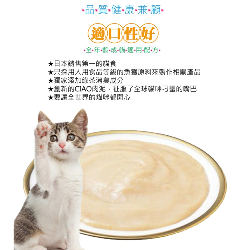 - 多種口味一次滿足,讓貓咪享受豐富的味覺體驗,食慾大開。