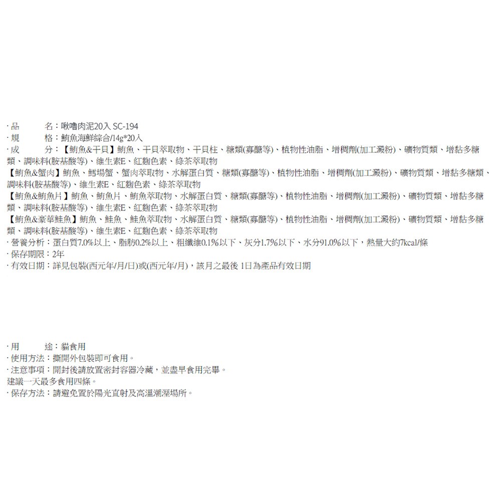 - 柔軟肉泥質地,方便貓咪舔食,輕鬆享受美味,補充營養。