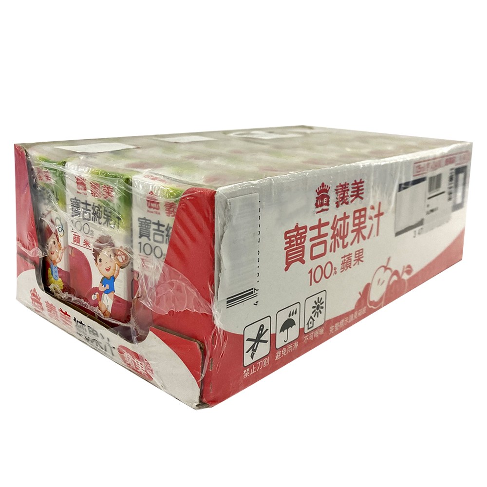 義美寶吉蘋果純汁,嚴選新鮮蘋果,無添加糖及人工色素。每箱24入,每份125ml,小巧包裝方便攜帶,適合全家大小隨時享用。品質安心可靠,讓您輕鬆享受健康美味。無論是早餐、午餐或點心,都是最佳的選擇,給您滿滿的活力與好心情。
