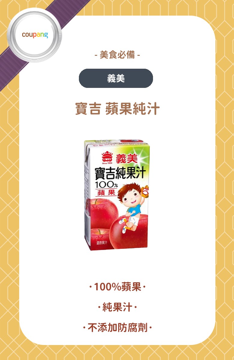 - 義美蘋果純汁,無添加糖,讓您品嚐到最純粹的蘋果原味。