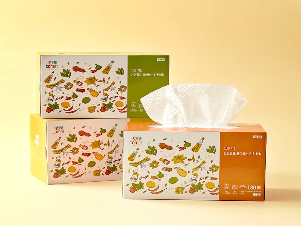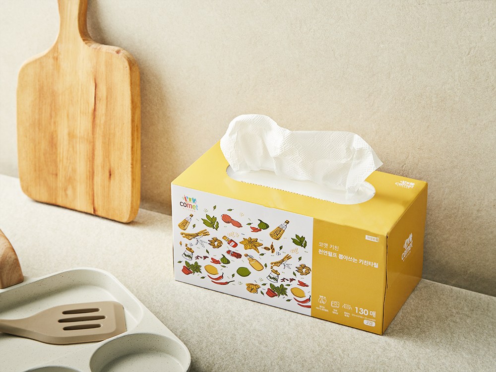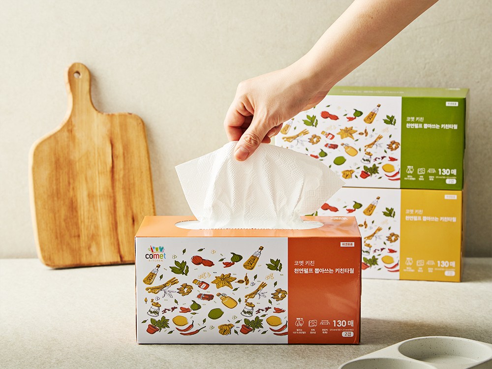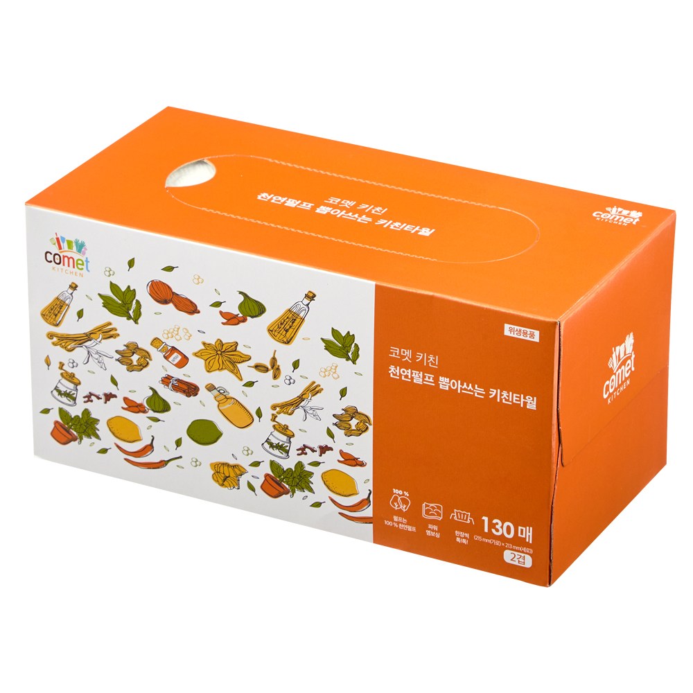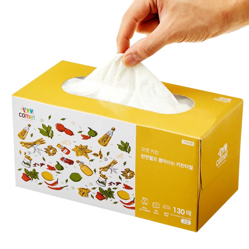 科梅特原生紙漿抽取式廚房紙巾,採用雙層加厚設計,具有更強的吸水力,能迅速吸收廚房中的油汙和水漬。使用原生紙漿製造,不含螢光劑等有害物質,讓您使用。抽取式設計,方便抽取,避免浪費,保持廚房清潔衛生。適用於擦拭餐具、廚房檯面、食材等多種用途,是您廚房清潔的好幫手。每盒130張,12盒裝,經濟實惠,滿足您的日常需求。