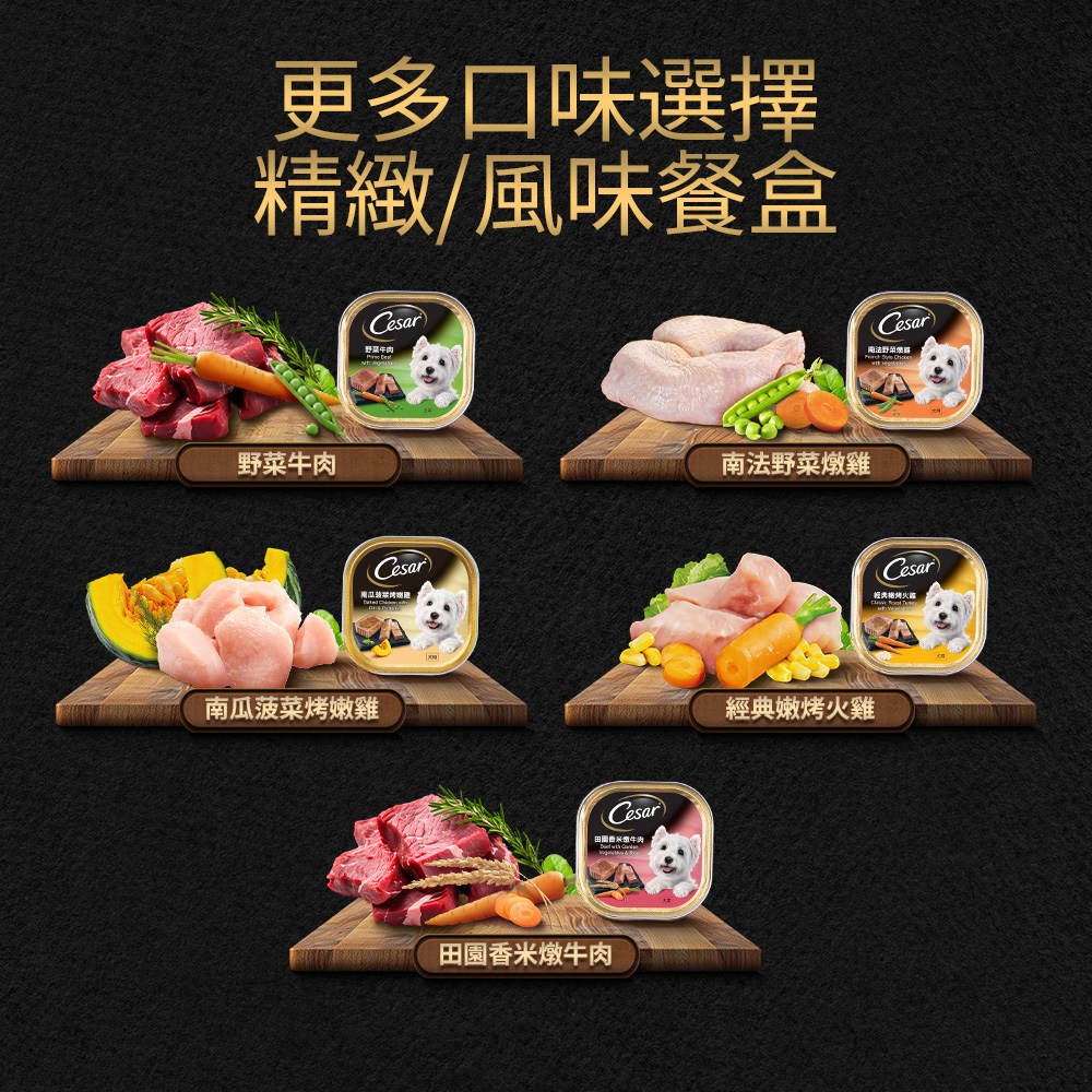 - 西莎牛肉及肝口味餐盒,口感豐富,讓您的愛犬享受多層次的味覺體驗,食慾大開。