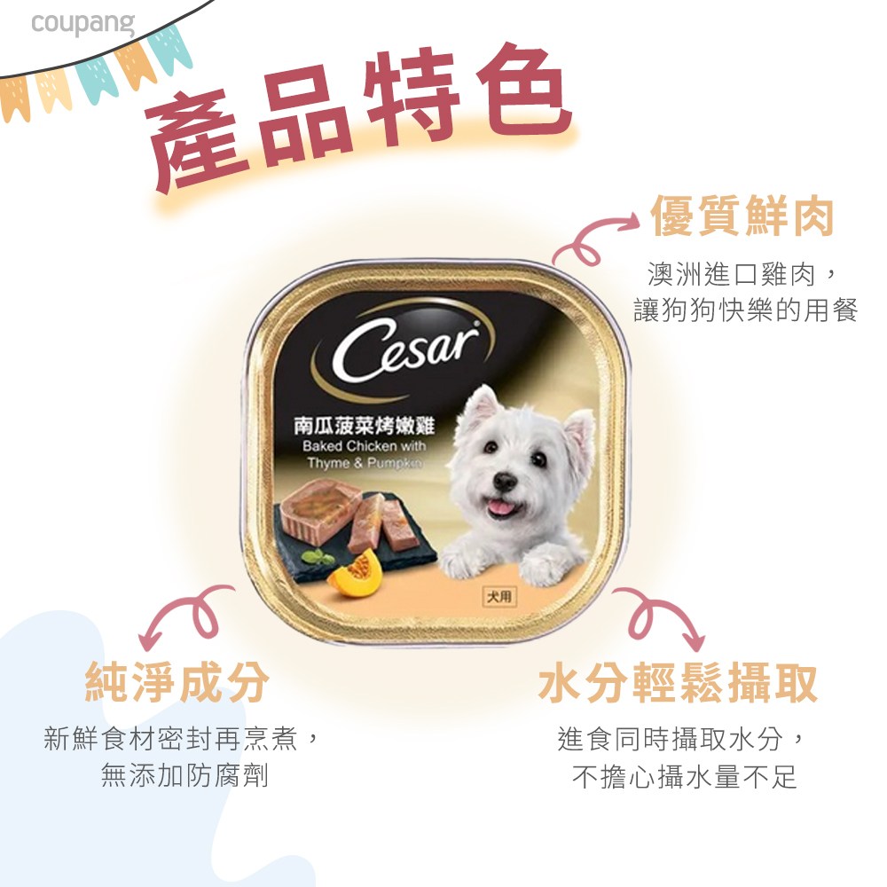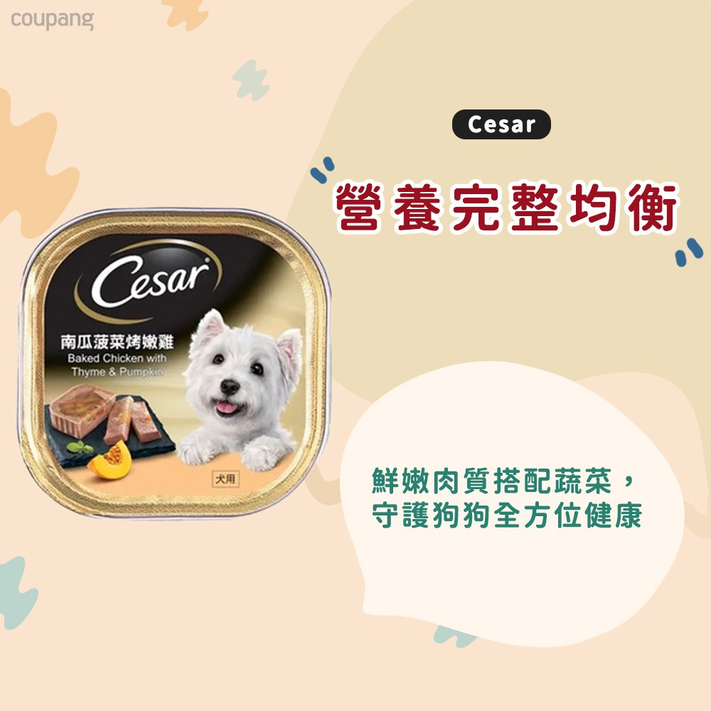 為您的愛犬提供美味又營養的選擇!Cesar西莎風味餐盒,南瓜菠菜烤嫩雞口味,嚴選新鮮食材,以獨特配方烹調而成,提供均衡的營養,讓您的愛犬每一餐都充滿期待。這款濕糧不僅美味可口,還能幫助補充水分,維持愛犬的健康。每箱包含24罐100g餐盒,方便餵食和儲存。給您的愛犬最好的,就從Cesar西莎開始!
