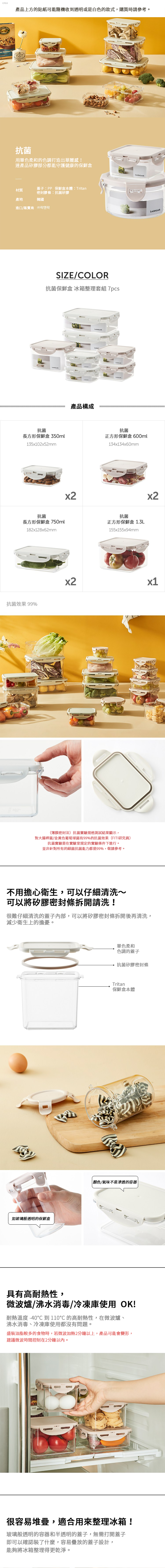 - 多種尺寸組合,滿足您儲存各式食材的需求,讓冰箱收納更整齊。