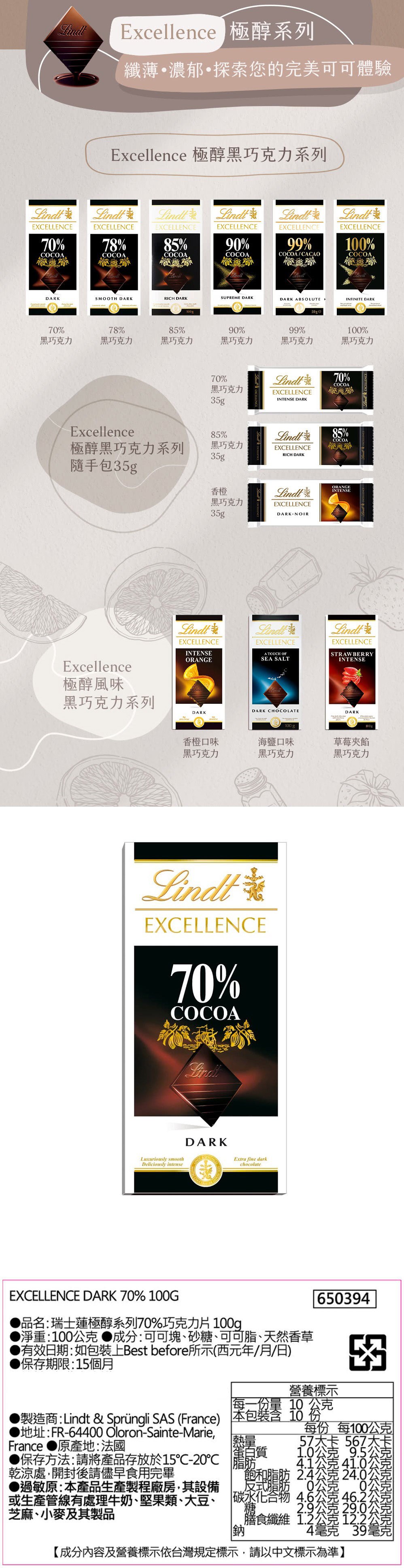 - 瑞士蓮70%黑巧克力,口感濃郁細膩,帶來極致的味蕾享受,讓您沉浸在巧克力的世界。