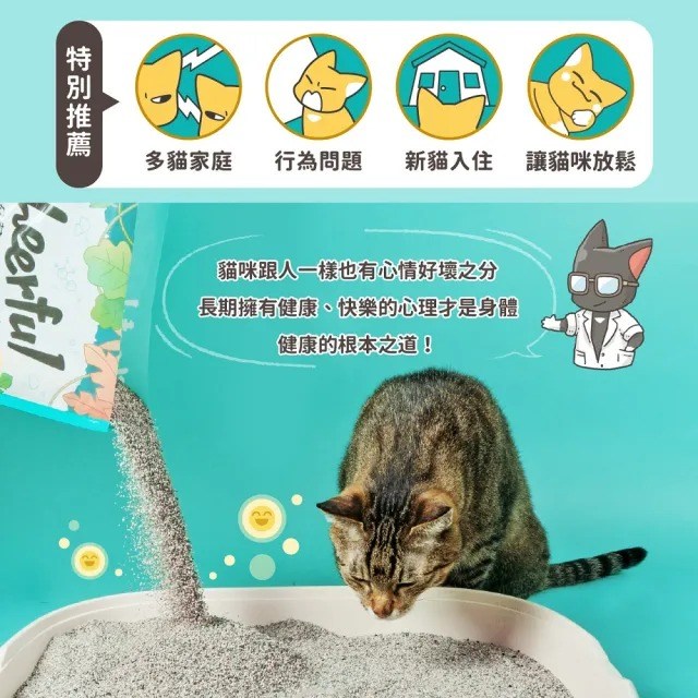 - 費洛蒙貓砂讓貓咪放鬆心情,享受如廁時光,減少壓力與焦慮感。