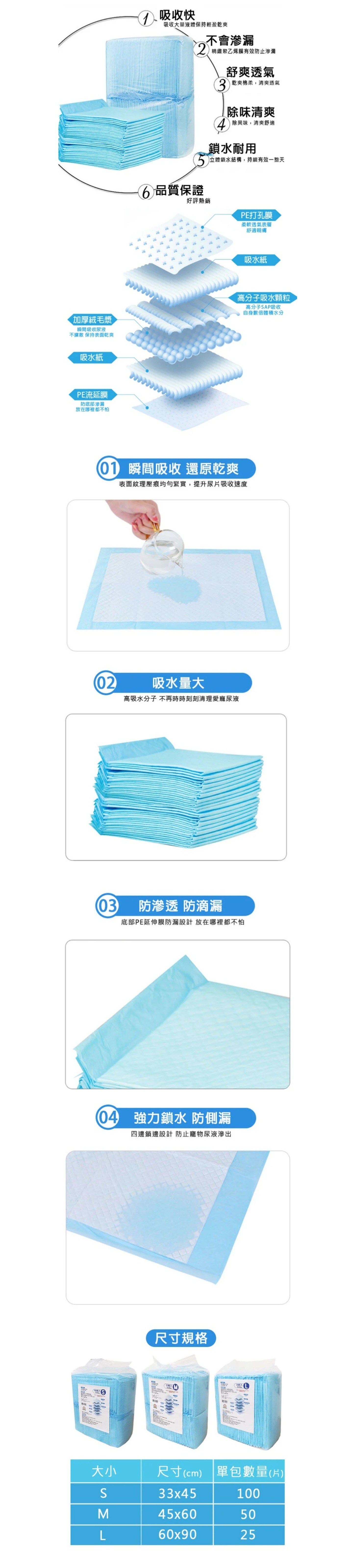 - 加厚吸水層,迅速吸收寵物尿液,保持表面乾爽舒適,讓寵物享受乾淨體驗。