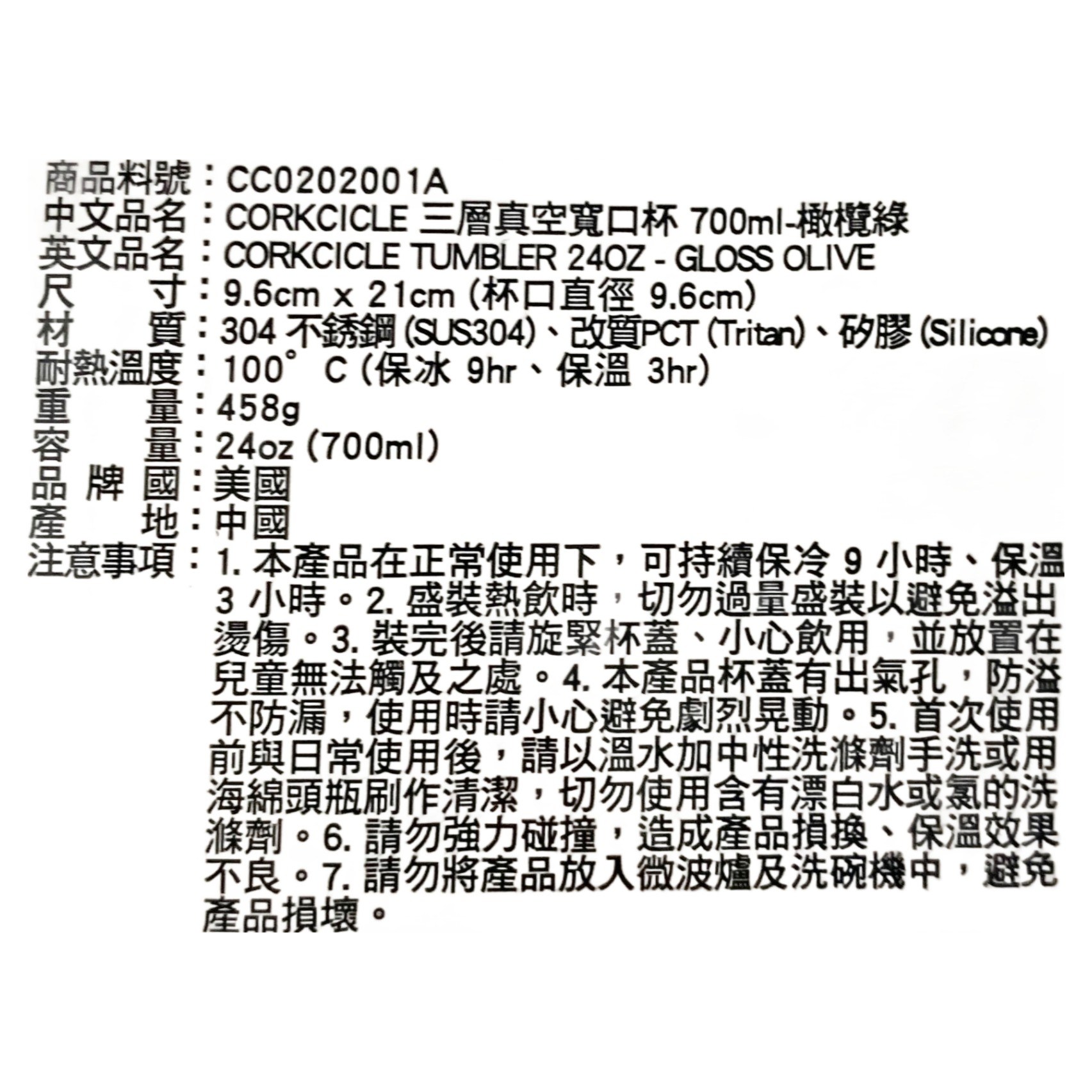 CORKCICLE 酷仕客三層真空寬口杯,以時尚的橄欖綠色呈現,容量達700ml,是您日常保溫保冷的理想選擇。採用三層真空絕緣技術,能有效保冷長達9小時,保溫3小時,讓您隨時享受最佳飲用溫度。杯身使用304不鏽鋼,內膽無塗層設計,抗鏽、抗蝕、抗氧化,使用更安全放心。寬口設計方便加入冰塊和清洗,矽膠墊圈底座則能確保杯子不易滑動,無論在辦公室或戶外活動,都能展現您的品味與實用性。