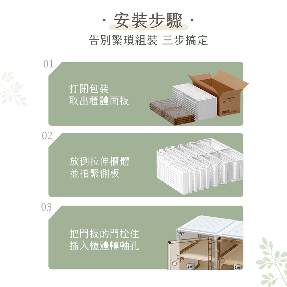 - 免組裝設計,拆箱即可使用,省去繁瑣的組裝步驟,快速享受收納。