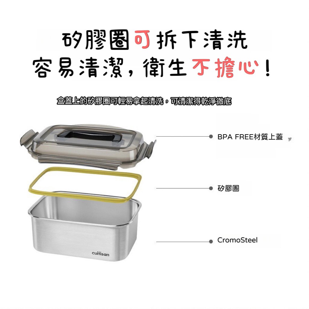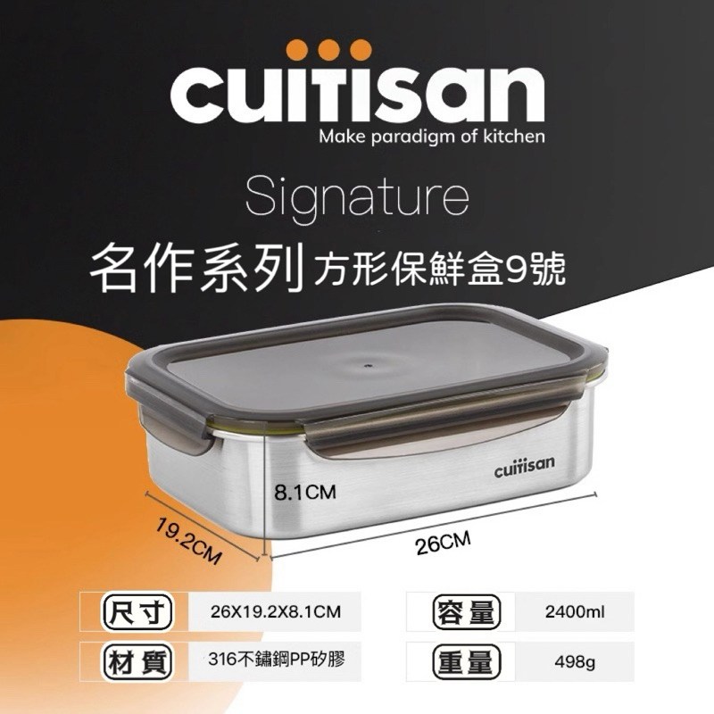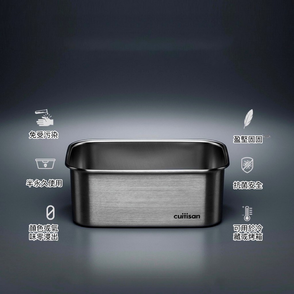 Cuitisan酷藝師名作系列方形9號保鮮盒,採用316不鏽鋼材質,容量達2400ml,是您廚房收納的理想選擇。此款保鮮盒不僅堅固耐用,更具備卓越的耐腐蝕性,確保食品安全衛生,延長保鮮期,讓您隨時享受新鮮美味。此外,此保鮮盒還可微波加熱,方便快捷,是現代家庭不可或缺的廚房好幫手。無論是儲存剩菜、準備便當,還是外出野餐,Cuitisan酷藝師保鮮盒都能滿足您的需求。