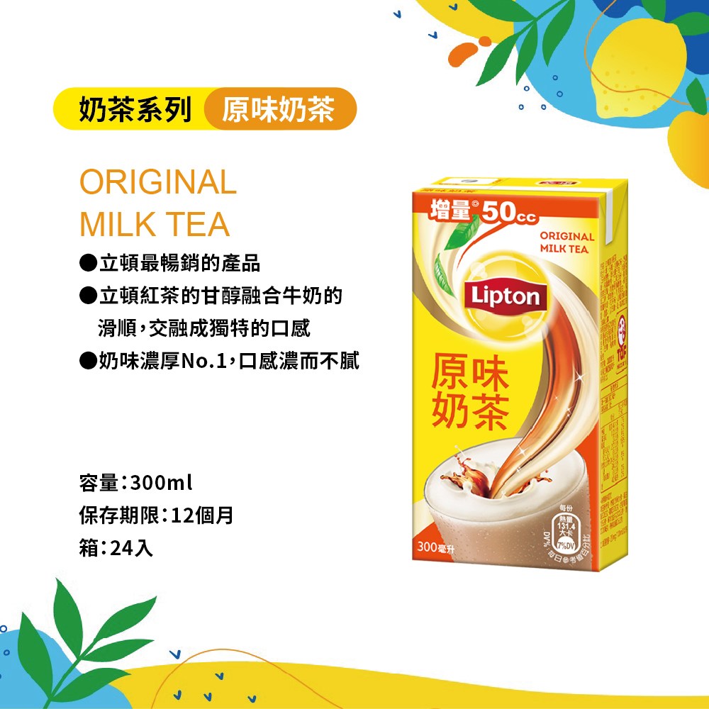 - 立頓原味奶茶,口感香醇滑順,隨時享受濃郁的奶茶風味,讓您心情愉悅。