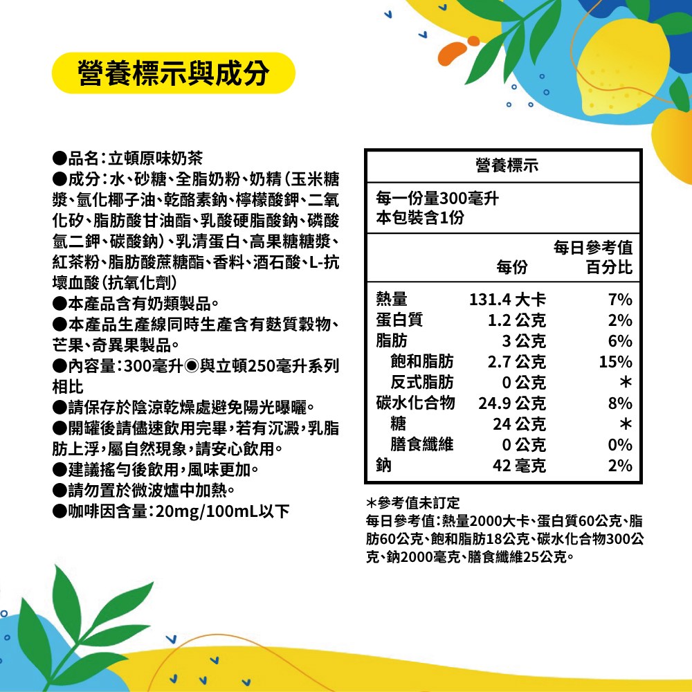 - 立頓原味奶茶使用紐西蘭奶粉,口感濃郁香醇,讓您隨時享受高品質的奶茶體驗。