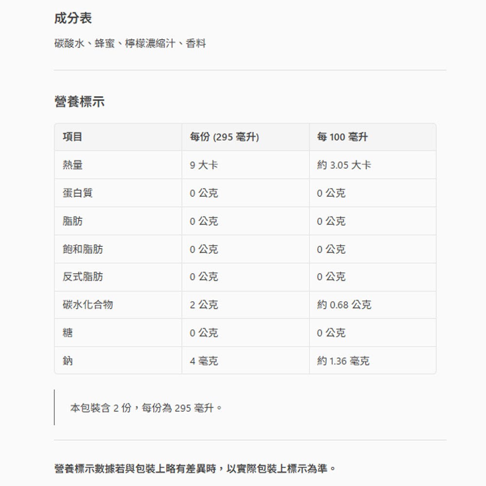 - 蜂蜜氣泡水,口感細緻綿密,氣泡在口中跳躍,帶來清爽暢快的感受。