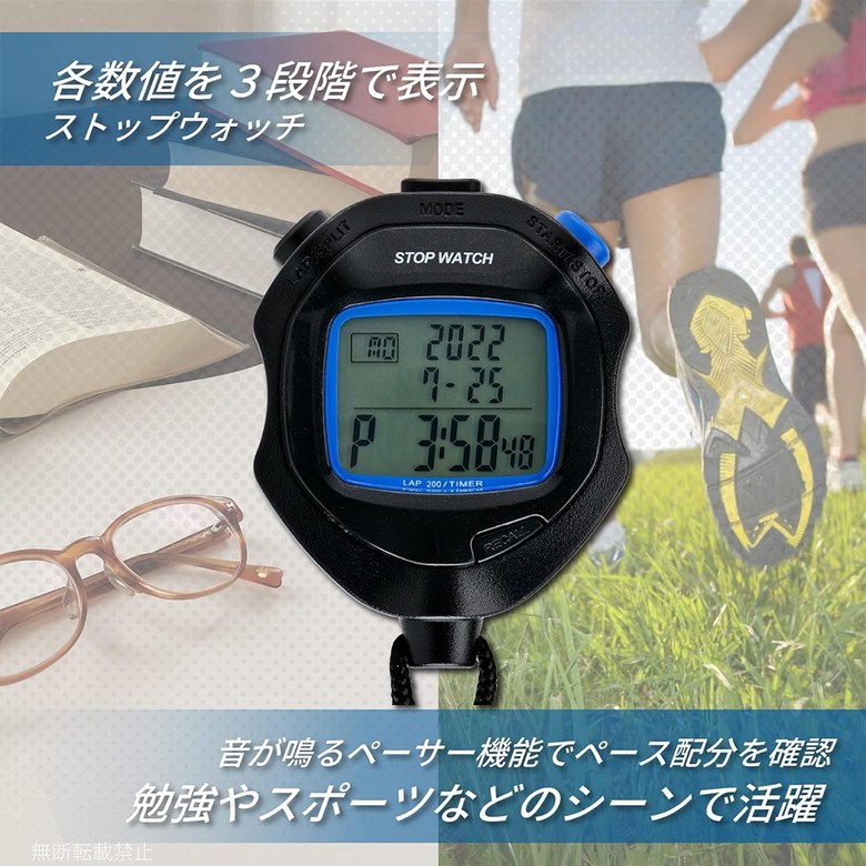 200運動計時器 TS-S114-BK, 1個, 黑色