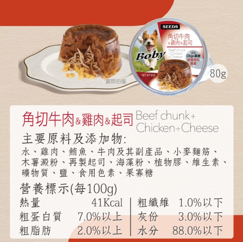 - - 豐富角切牛肉搭配雞肉與起司,給毛孩帶來多層次的美味享受,讓牠們愛不釋手。