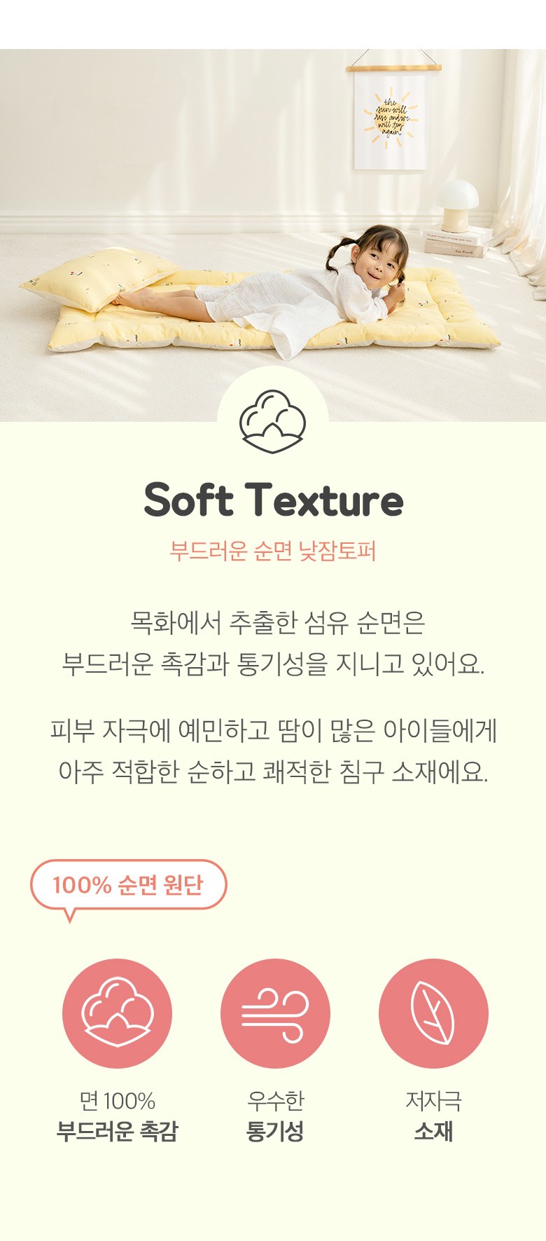 - 這款兒童午睡墊採用親膚純棉材質,觸感柔軟舒適,呵護寶貝嬌嫩的肌膚,讓孩子們享受安心睡眠。