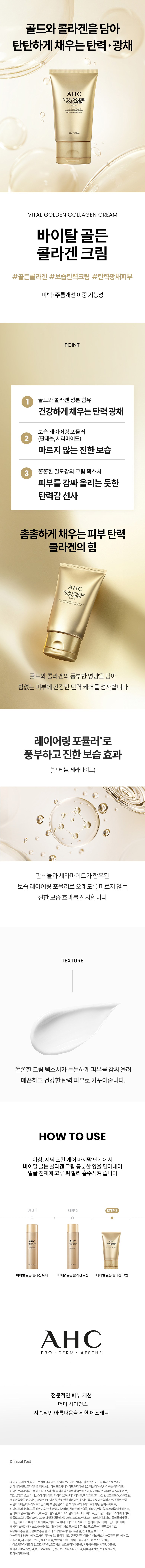 AHC Vital Gold膠原蛋白霜是一款蘊含黃金與膠原蛋白的滋養面霜,專為缺乏彈性的肌膚設計。其獨特配方能有效提升肌膚彈力,重現健康光澤。保濕層疊配方,結合泛醇和神經醯胺,為肌膚提供深層且持久的保濕效果,告別乾燥困擾。緊密細膩的乳霜質地,能緊密包裹肌膚,帶來柔滑彈潤的觸感,讓肌膚煥發年輕活力。早晚護膚的最後一步,取適量塗抹於全臉,輕輕按摩至吸收,即可感受肌膚的改變。
