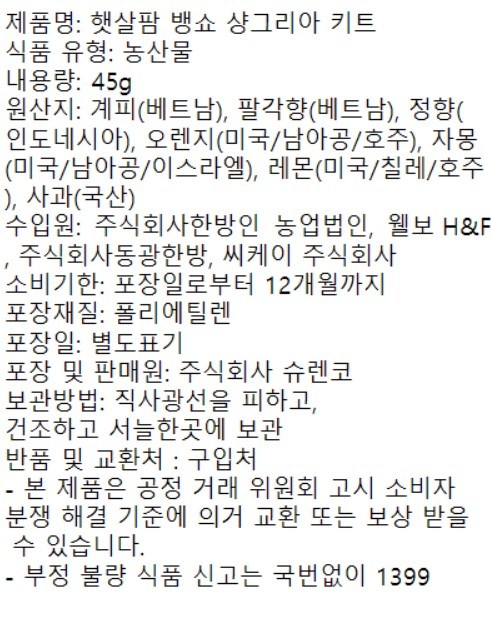 | 食品添加物 | 詳見商品包裝或請洽境外廠商 | 廠商名稱/廠商聯絡方式 | 詳見商品包裝或請洽境外廠商 |