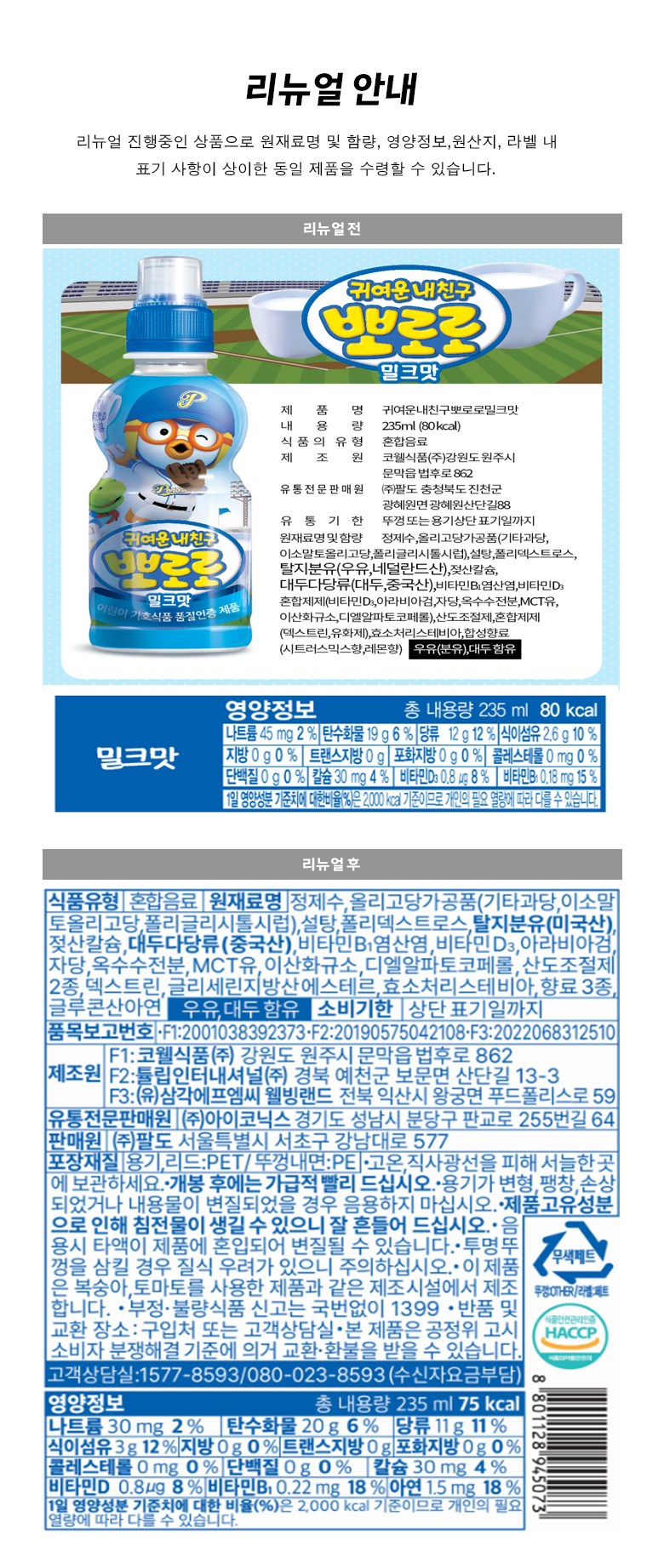 - 可愛Pororo包裝設計,八道乳酸飲吸引孩子目光,讓喝乳酸飲成為一種樂趣,隨時享受美味與健康。