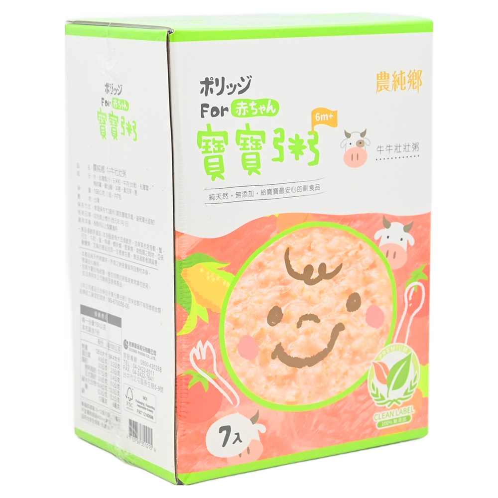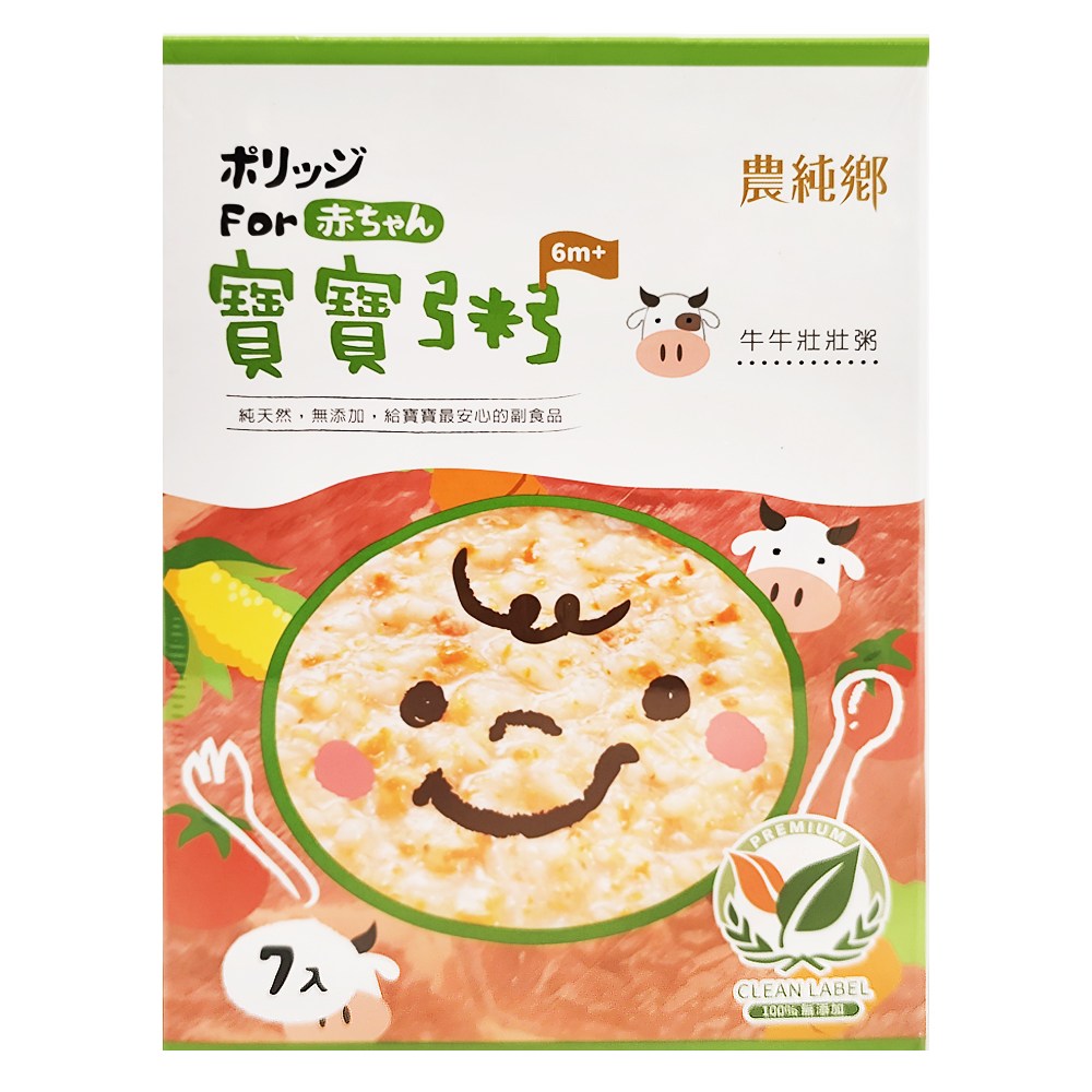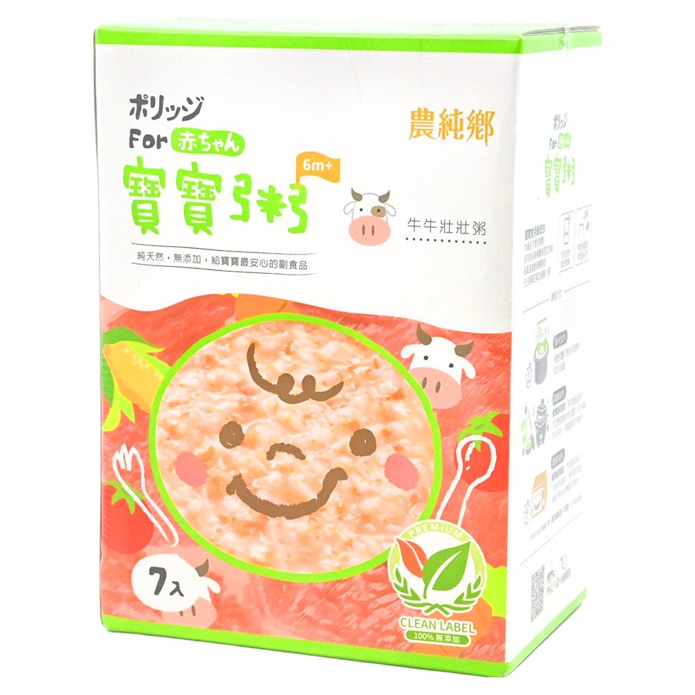 農純鄉 牛牛壯壯粥 is the perfect weaning baby food for your little one aged 6 months and up. Each box contains 7 convenient 150g packs of nutritious porridge, making mealtime easy and stress-free. Made with carefully selected ingredients, including Taiwan fragrant rice and tender beef, this porridge provides essential nutrients to support your baby's growth and development. The gentle flavors and smooth texture are ideal for introducing new tastes and textures to your baby's palate. With no artificial additives or seasonings, you can trust 農純鄉 牛牛壯壯粥 to provide a wholesome and delicious meal for your precious child. Convenient and easy to prepare, simply heat and serve for a quick and healthy meal anytime, anywhere.