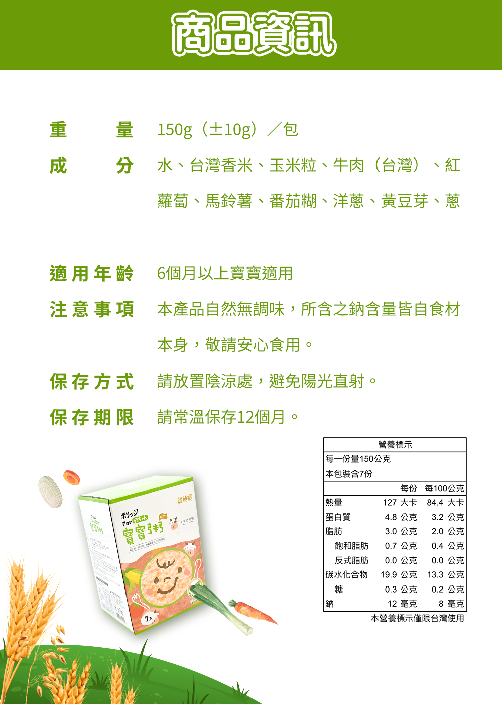 - 嚴選台灣在地香米,口感綿密細緻,讓寶寶更容易吞嚥,享受米飯的自然香甜滋味。