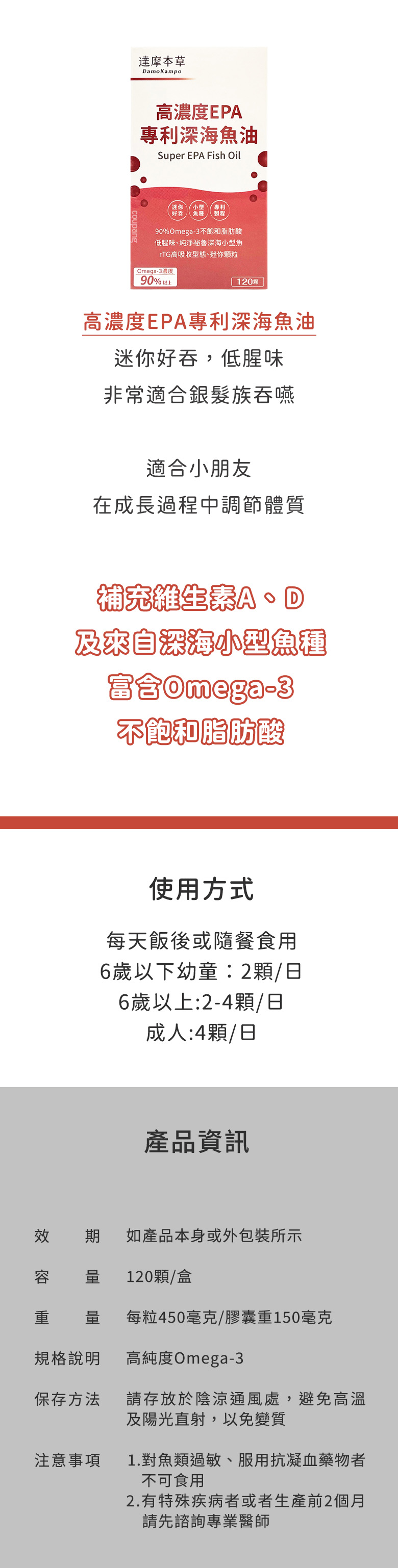 - 專利深海魚油,純淨無汙染,來自祕魯深海小型魚種,確保Omega-3的優質來源,讓您安心食用。