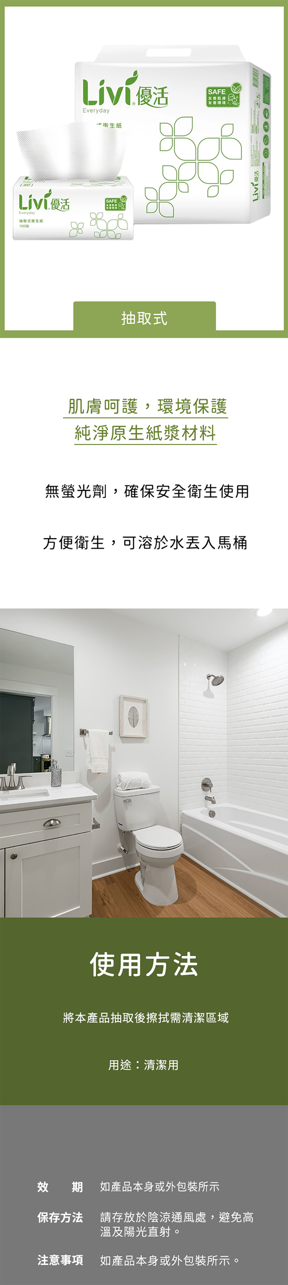 - 優活抽取衛生紙,觸感細緻,給您如雲朵般的輕柔呵護,使用體驗更升級。