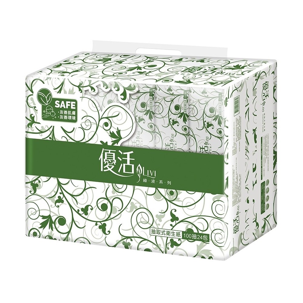 LIVI 優活抽取式衛生紙,給您和家人帶來溫柔呵護。每袋包含24包抽取式衛生紙,每包100抽,雙層設計,紙質柔韌細膩,親膚舒適。採用原生紙漿,不含螢光劑,安全衛生,呵護您的肌膚健康。無論是居家使用還是辦公室常備,LIVI 優活抽取式衛生紙都是您的理想之選,給您帶來潔淨舒適的體驗。