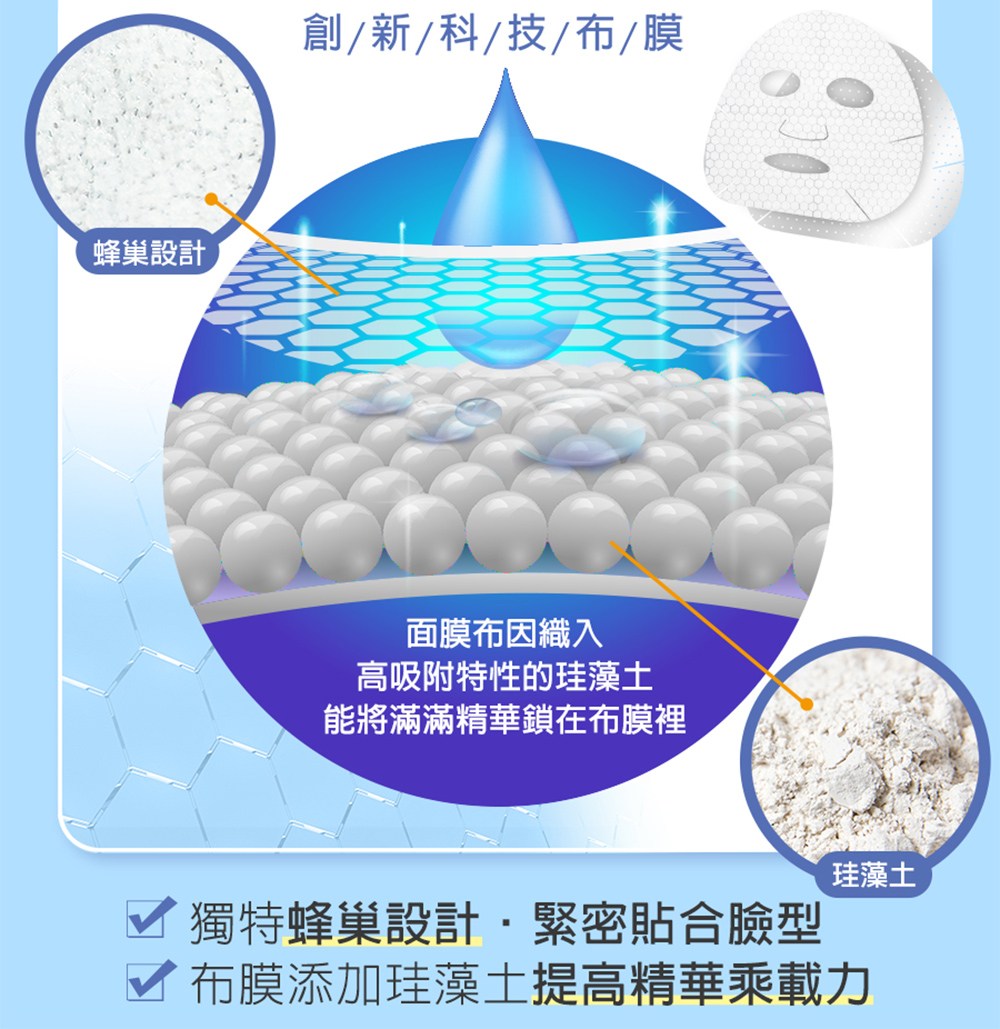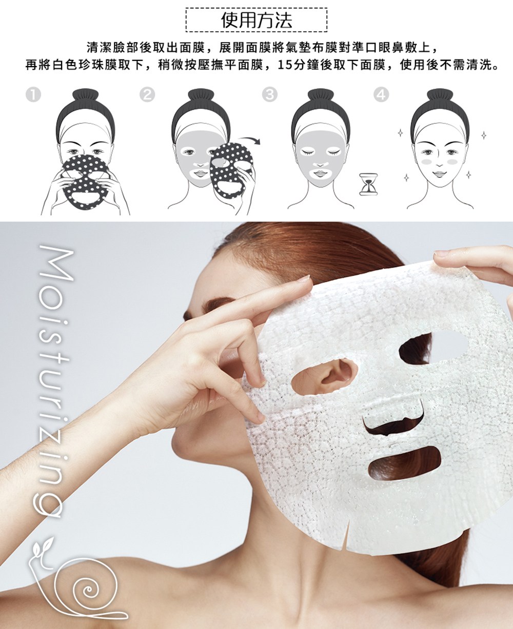 - 氣墊面膜輕柔貼合,讓精華液均勻滲透,提升肌膚吸收力,效果更顯著。