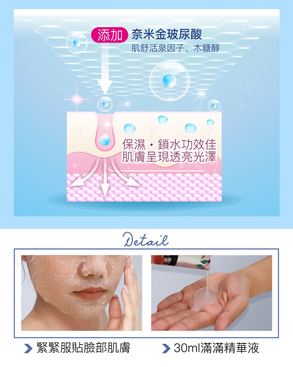 - 保濕成分深入肌底,改善乾燥缺水,使肌膚由內而外散發健康光彩。
