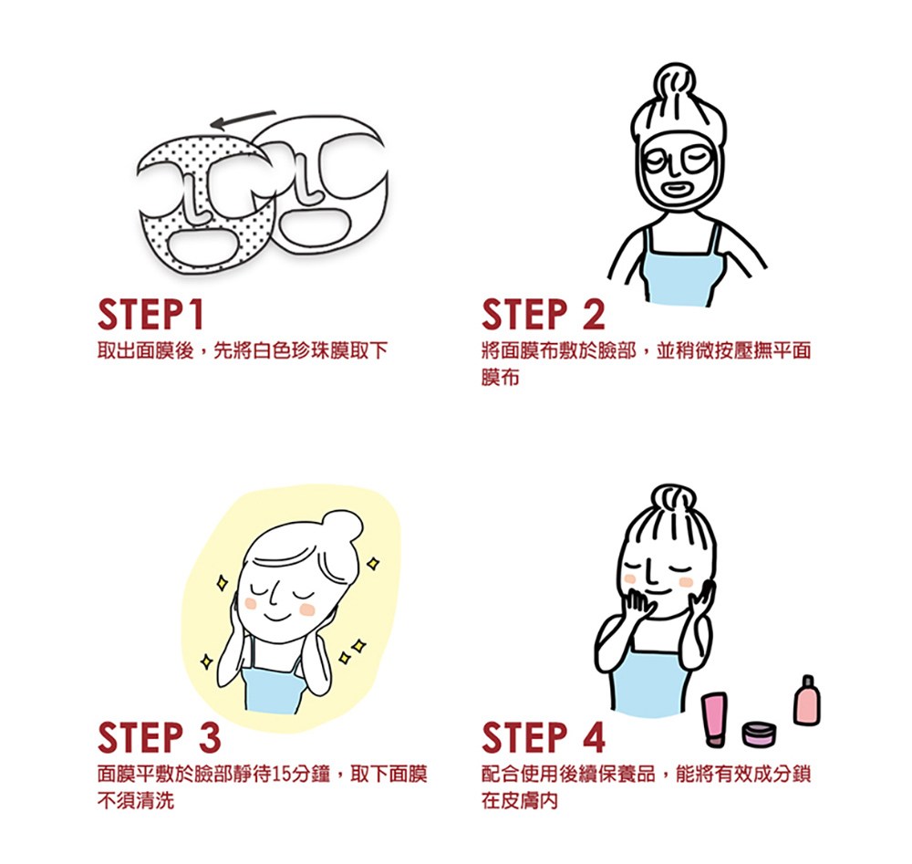 - 絲微膜材質輕薄透氣,讓肌膚享受無負擔的舒適感,敷面膜時依然可以自由活動。