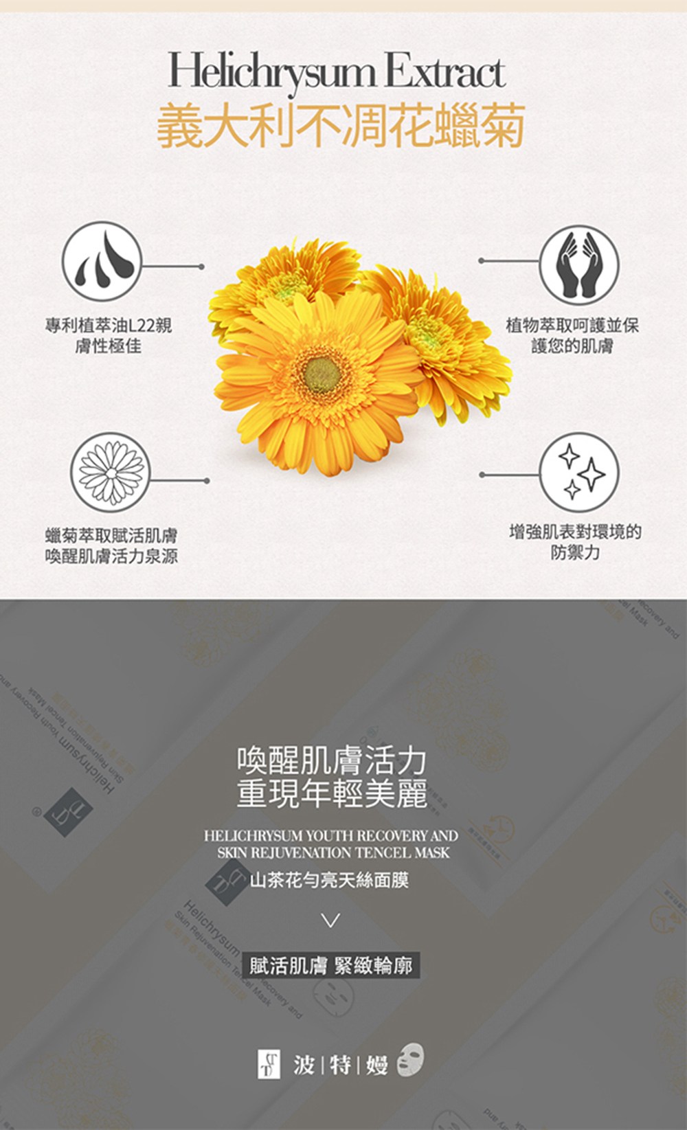 - - 蠟菊精華深層滲透,喚醒肌膚活力,重現年輕光采,讓您容光煥發。