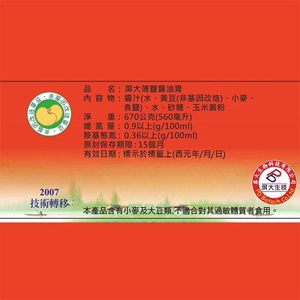 - 不含防腐劑,屏大薄鹽醬油膏讓您安心享用,為家人健康把關,美味又放心。