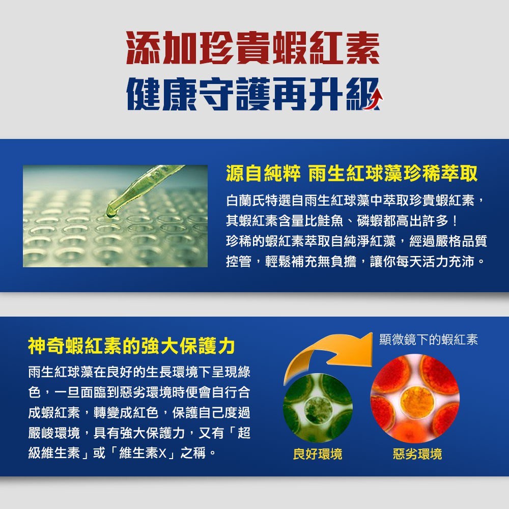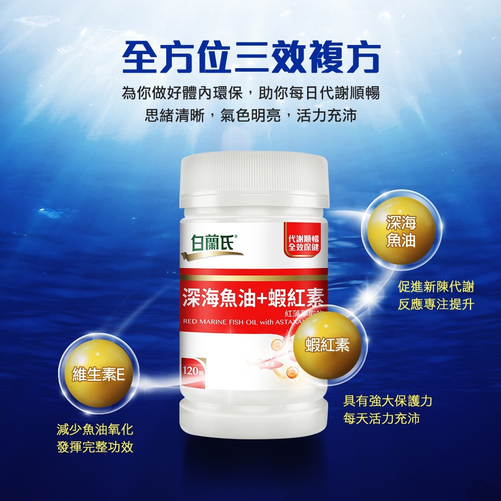 - 白蘭氏深海魚油結合蝦紅素,提供雙重保護,讓您思緒清晰、反應靈敏,工作效率倍增。