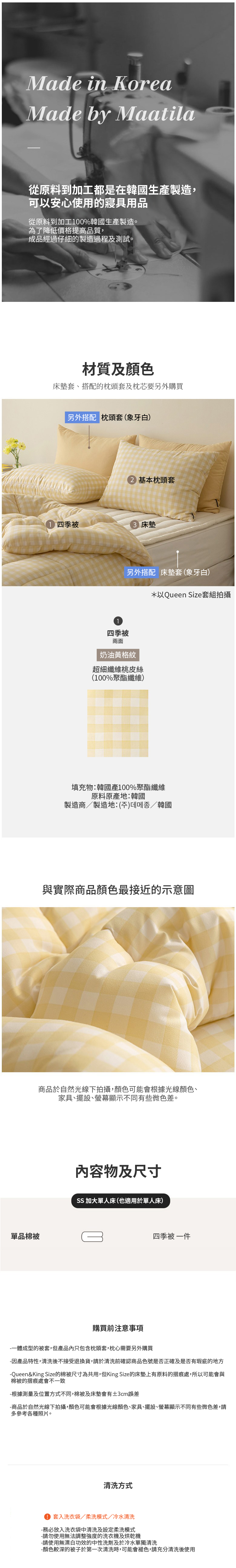 maatila粉彩格紋四季薄被,以香蕉奶油黃色調,為您的寢室帶來柔和的色彩。這款薄被採用細紗纖維材質,觸感柔軟如水蜜桃,讓您在睡眠中感到舒適與放鬆。輕盈的材質,讓您在四季皆可使用,享受蓬鬆舒適的睡眠環境。方便水洗,輕鬆管理,讓您的被子始終保持如新。無論是搭配象牙色床墊,都能營造出甜美溫馨的臥室氛圍。